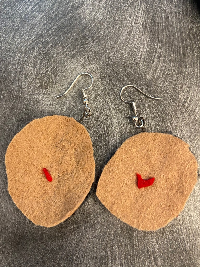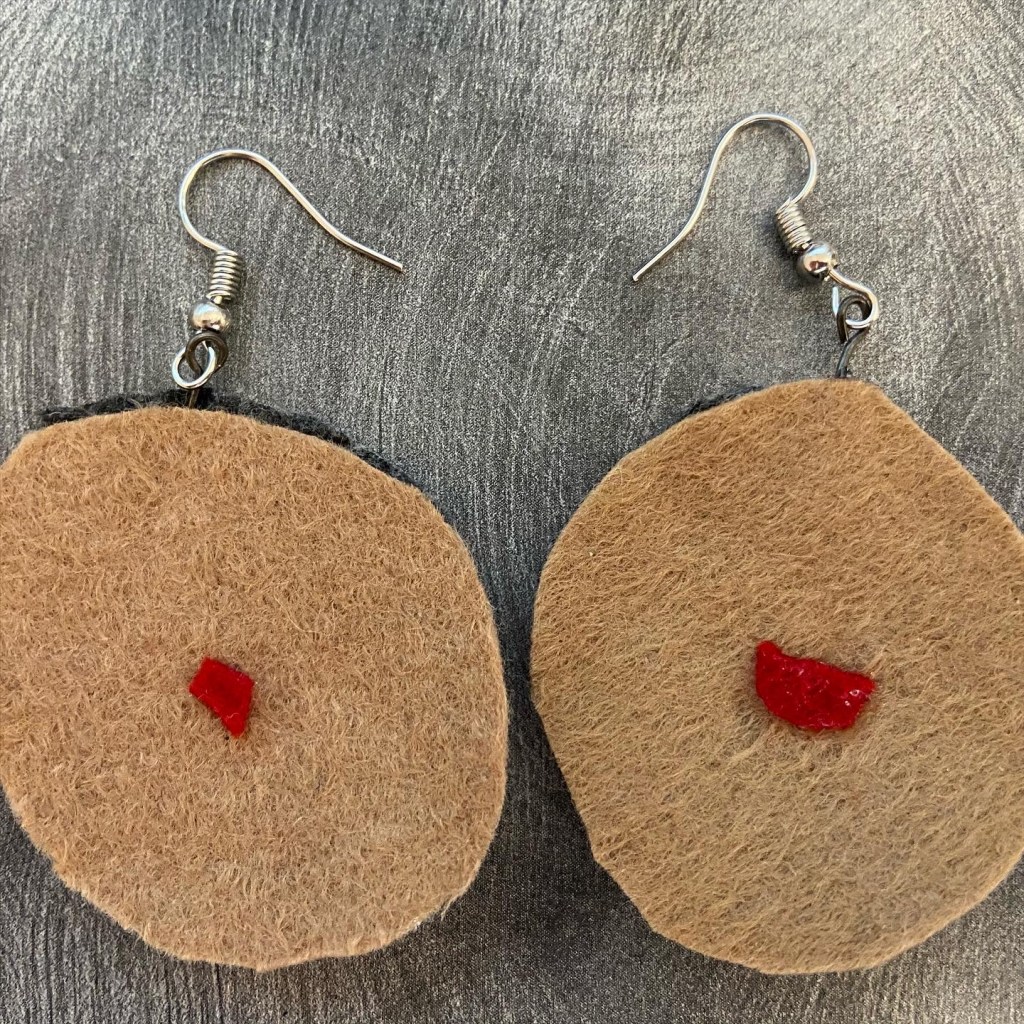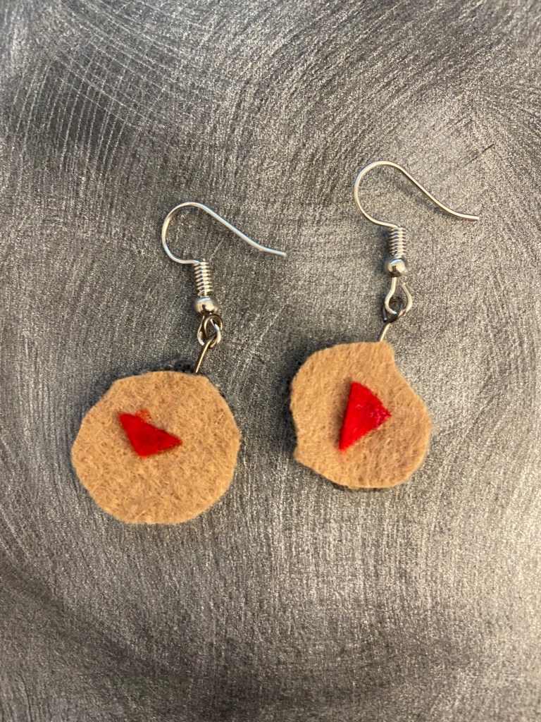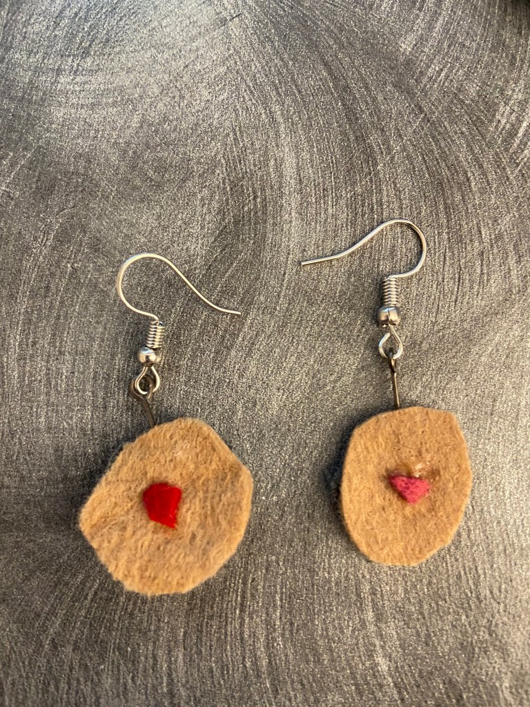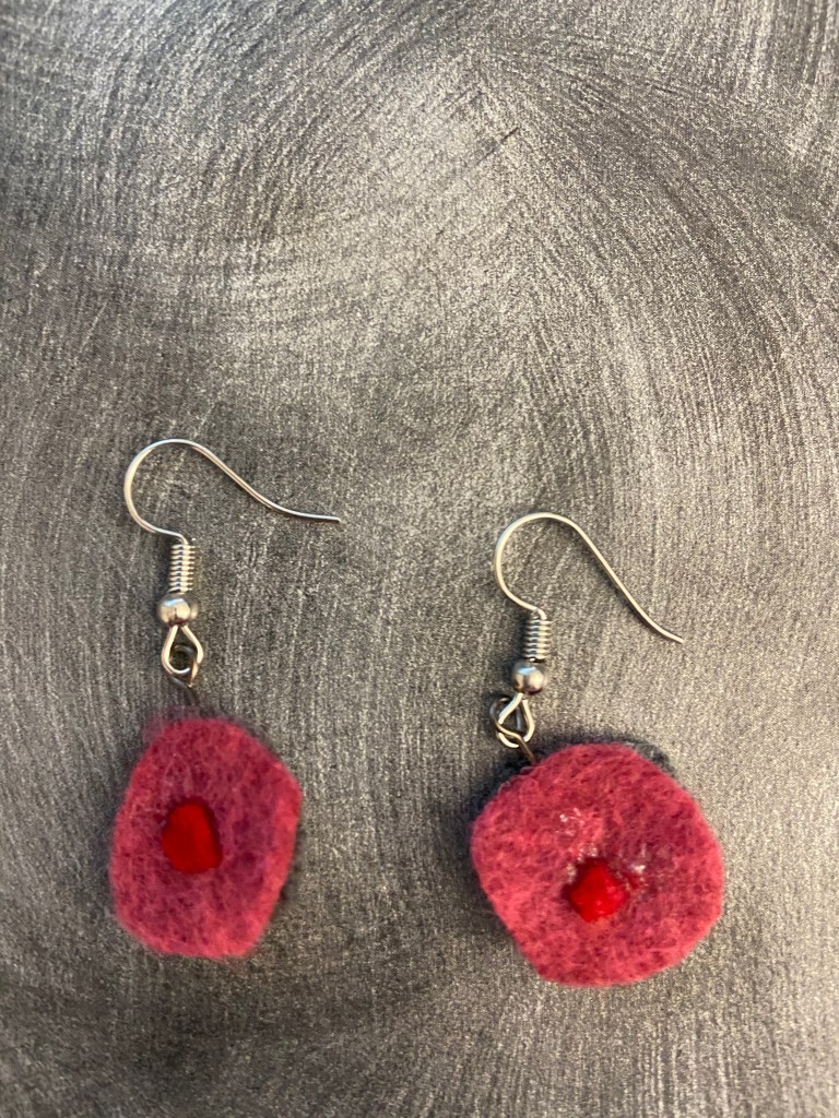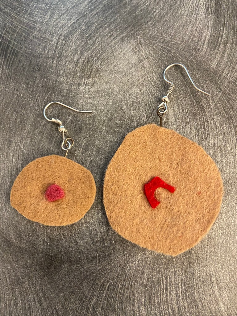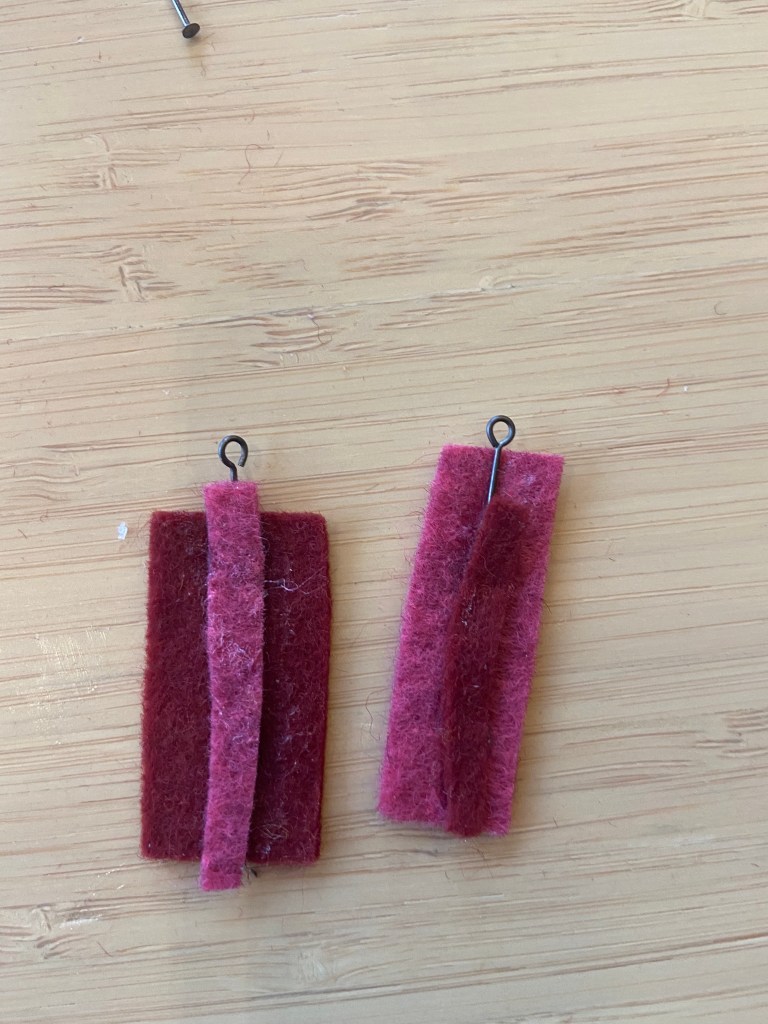 During the pandemic, I made jewelry out of felt, in the shapes of left over scraps. By using scraps, unexpected abstract shapes emerge, as shown below.