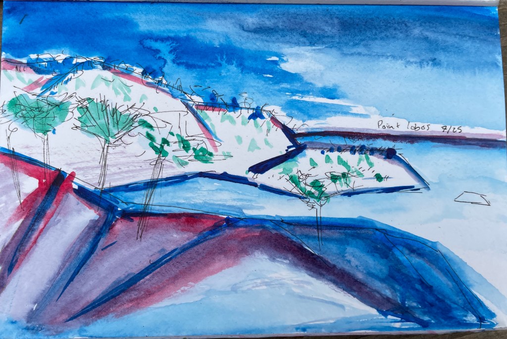 I love the portability of watercolors! I bring my watercolor pack to hikes, the park and to the pottery studio. Between 2020 – 2022, I primarily watercolored in Santa Cruz, CA and New York, NY in which I capture nature and friends. In 2023, I watercolored in New York, NY and Mexico City.